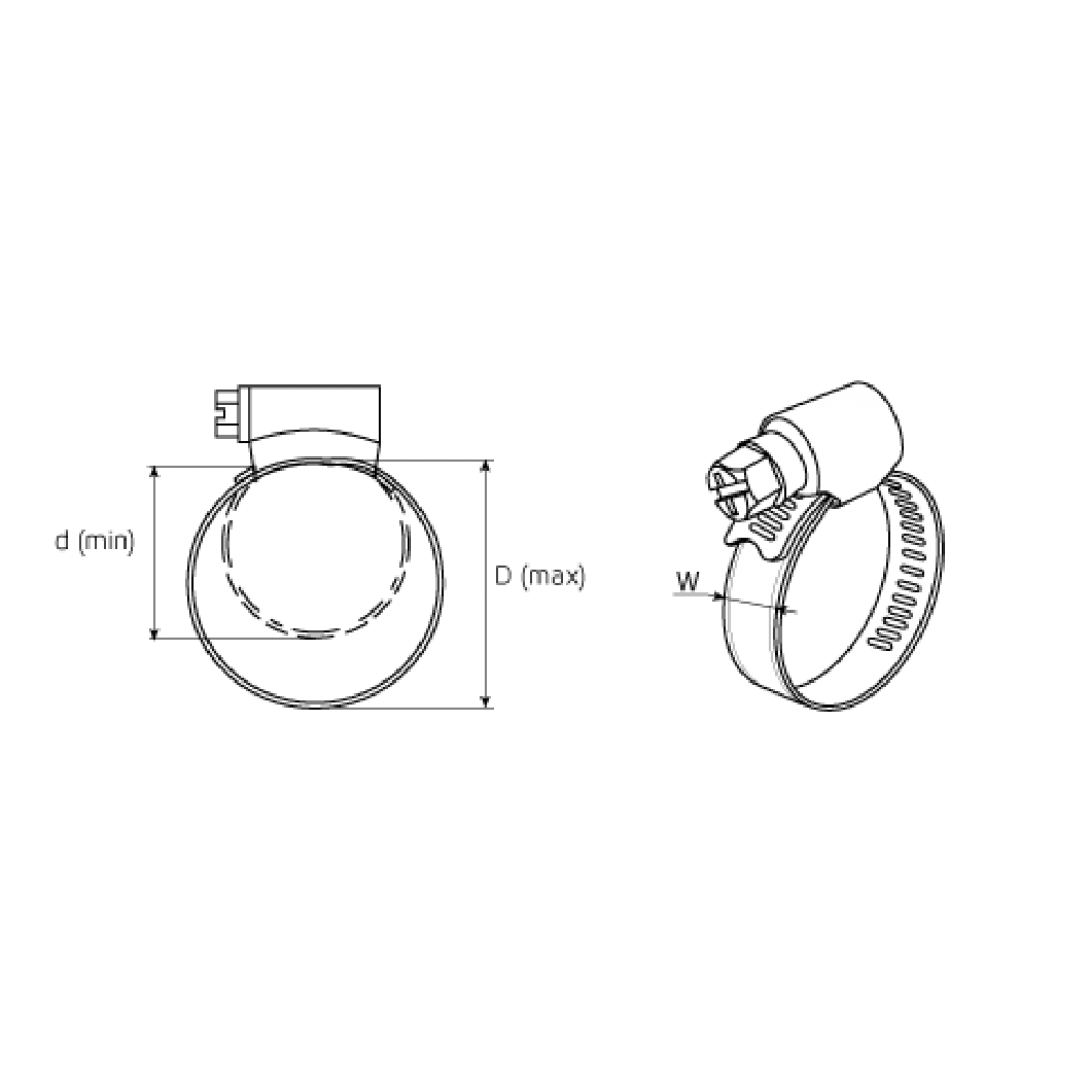 • Конструкция червячного узла обеспечивает необходимый зазор и оптимальный угол резьбы в паре винт-лента, что позволяет равномерно распределить усилие сжатия по периметру и увеличить предельный момент затяжки