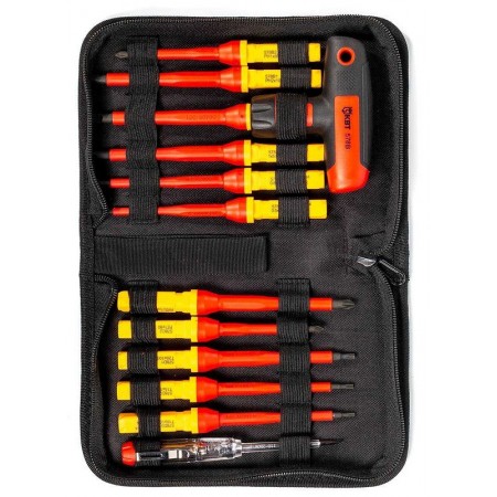 - Особенности конструкции: для работ под напряжением до 1000В, индикаторная отверка в комплекте, двухкомпонентная нескользящая рукоятка, механизм фиксации биты в рукоятке