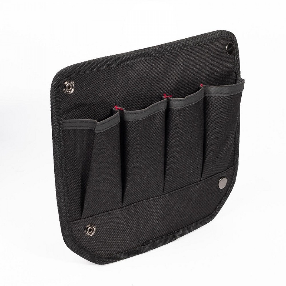 • Конструкция: 1 большое отделение с 12 крепежными элементами, 1 съемный разделитель для большого отделения с 7 карманами, 1 карман на липучке, 11 карманов на внешних сторонах сумки, 1 металлический держатель для рулетки
