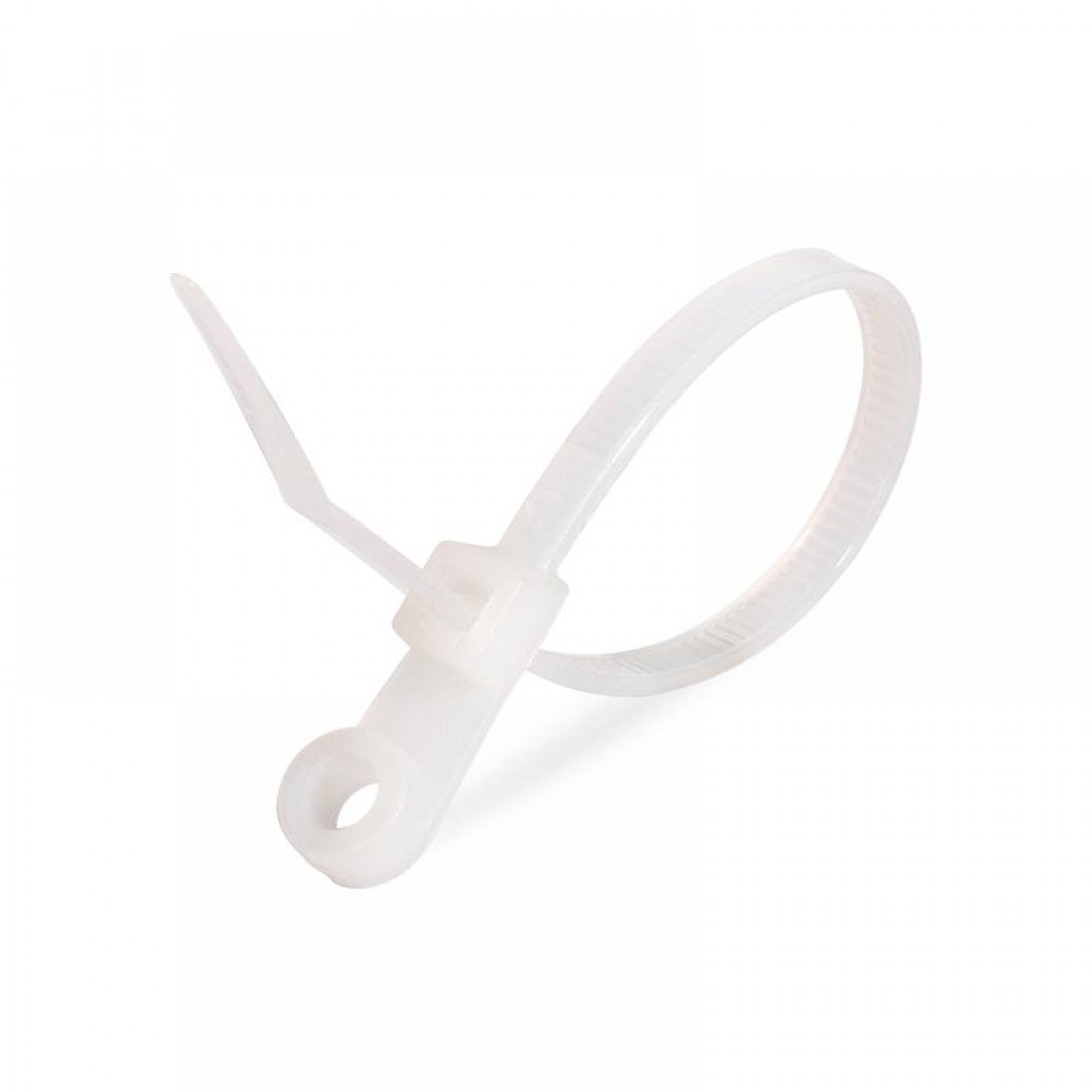 • Конец стяжки имеет конструктивное отверстие для крепежа хомута к рабочей поверхности при помощи саморезов